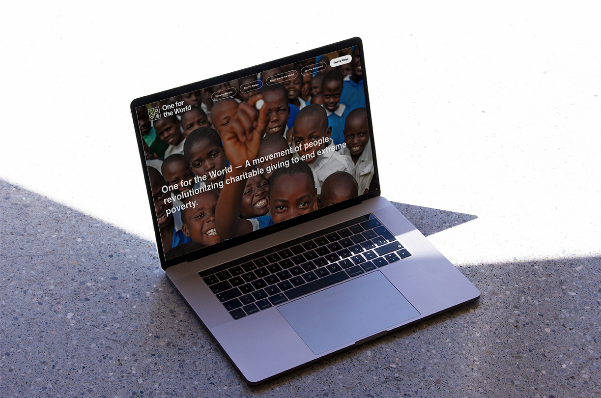 One for the World’s previous brand identity and website was suffering from a classic case of “nonprofit hires a relative to do everything”, with little to no updates in its 8 year lifetime. It was clear that the identity and messaging was not connecting with our growing target audiences and the changing cultural and social landscape on university campuses and in corporate offices. The website was also difficult to navigate and the language used was stuffy and unapproachable. We also needed to differentiate ourselves from our competitors that had similar value propositions to our own and shared in a homogenous brand aesthetic.